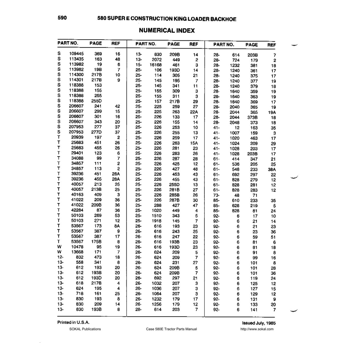 This comprehensive 200+ page parts manual provides complete parts identification and ordering information for the Case 580E tractor. This essential technical document contains detailed exploded view diagrams, part numbers, and specifications for every component of your Case 580E.