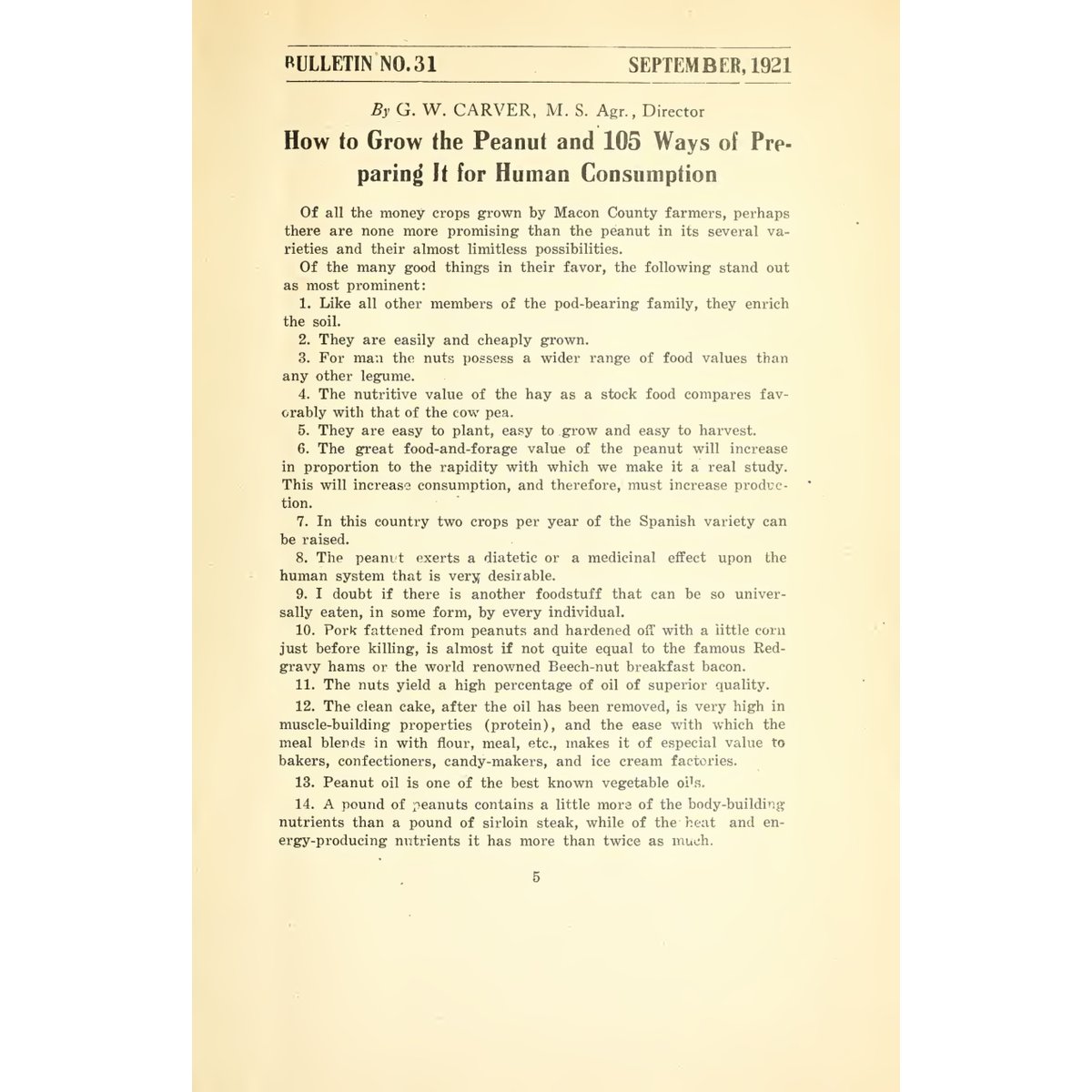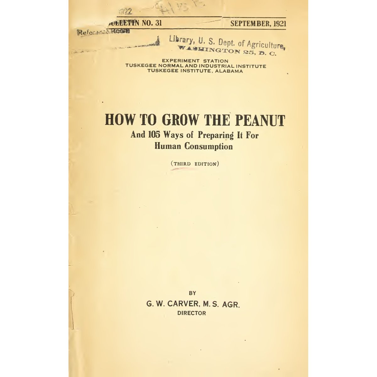 • Original 1921 publication by renowned agricultural scientist George Washington Carver