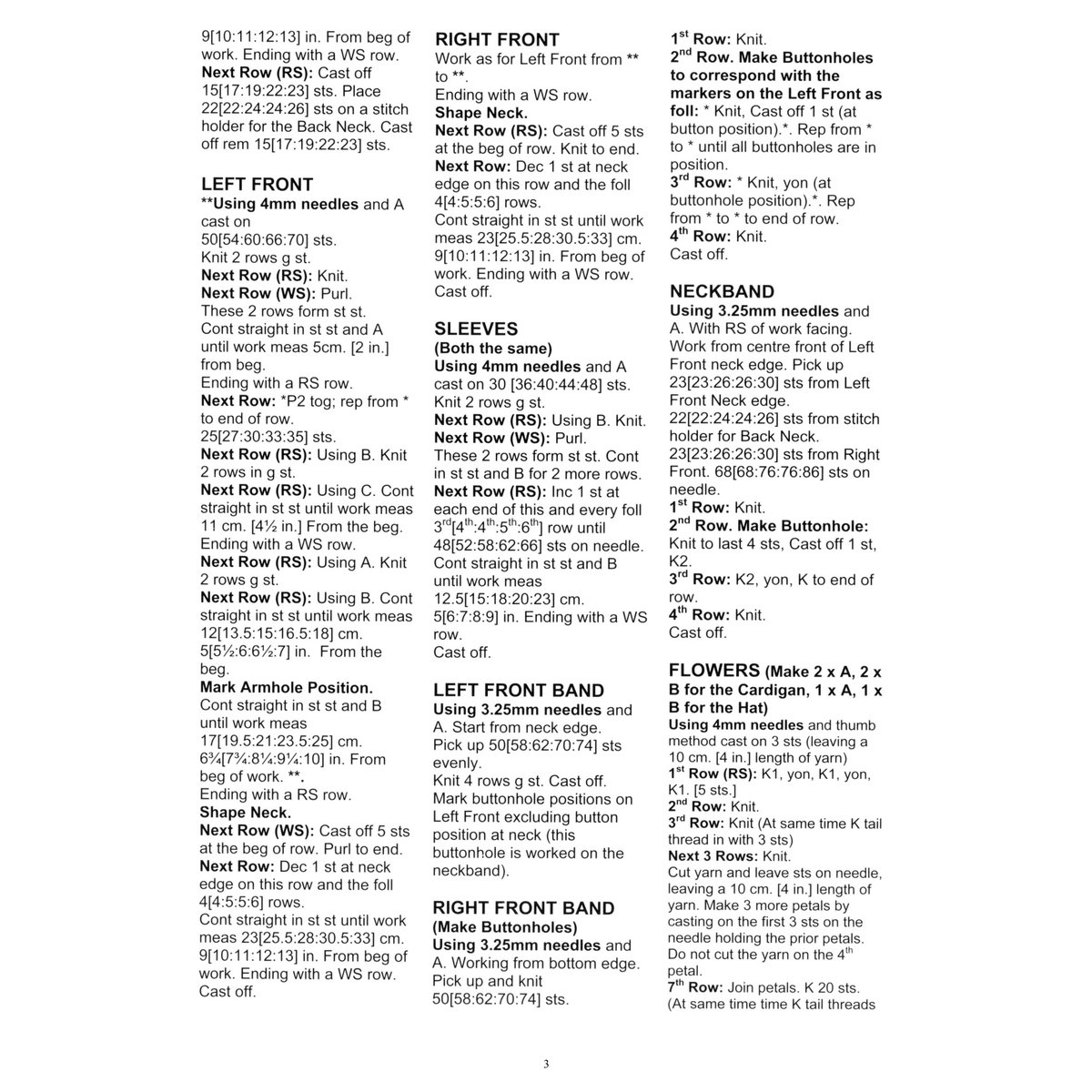 • Yarn weight and yardage requirements