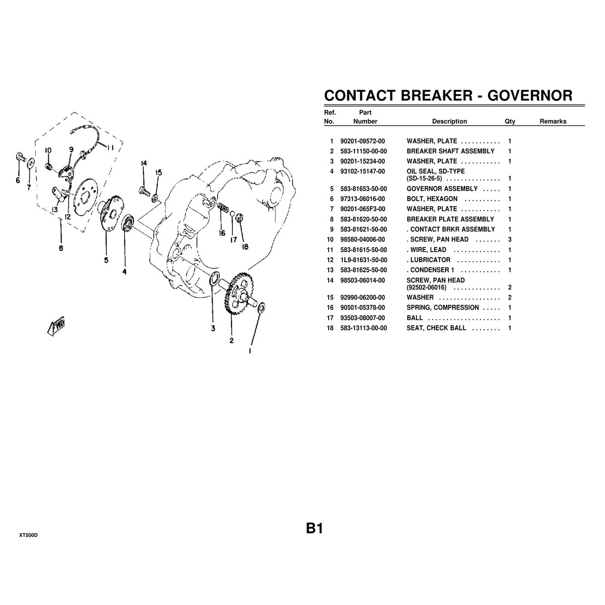 Perfect for Yamaha XT500D owners performing their own maintenance, motorcycle mechanics working on vintage Yamaha singles, engine rebuilders specializing in classic motorcycles, parts dealers needing accurate part numbers, restoration enthusiasts rebuilding original engines, and motorcycle repair shops servicing older Yamaha enduro bikes.