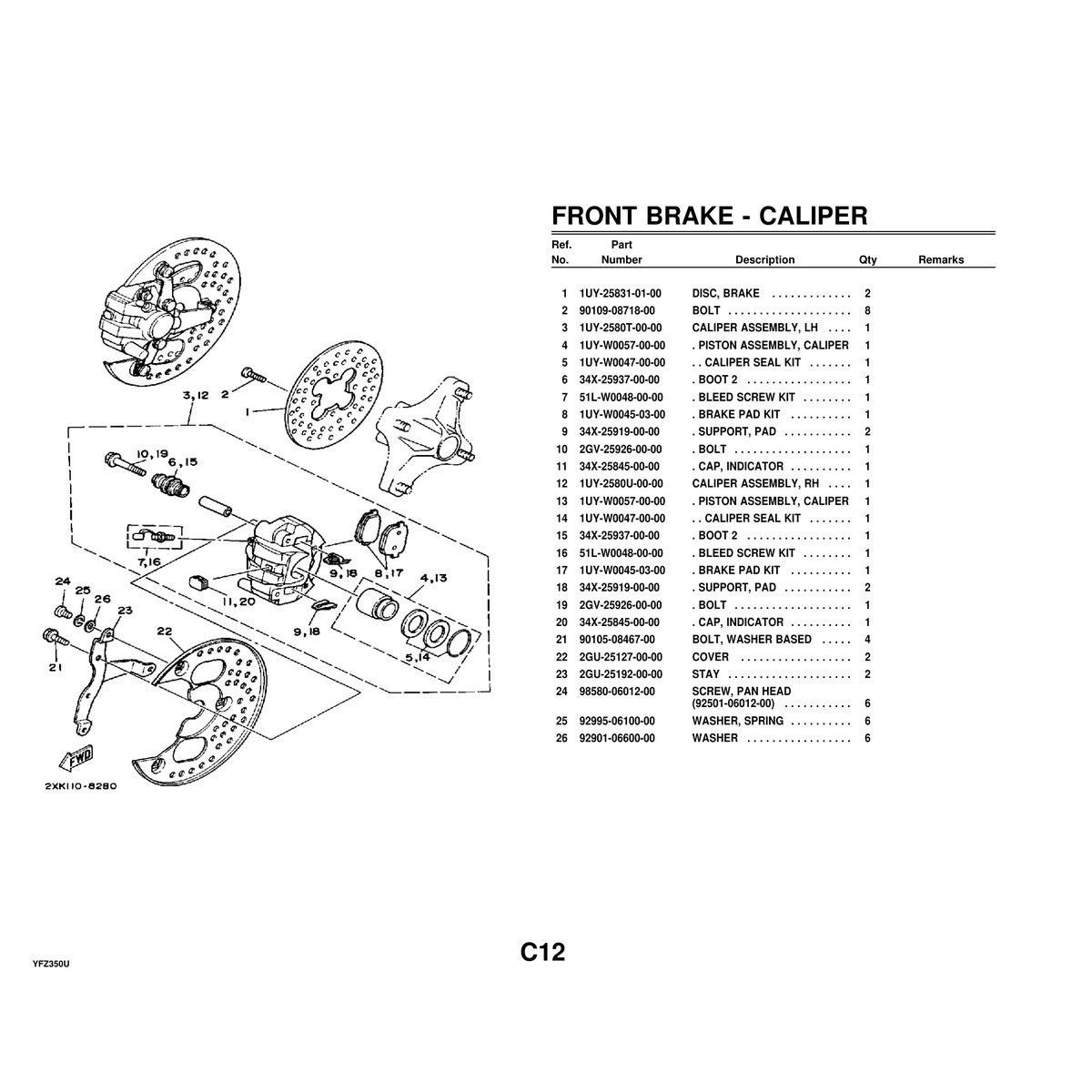 This comprehensive 150+ page Yamaha YFZ350U Parts Manual provides detailed parts diagrams, part numbers, and assembly information for your Yamaha YFZ350U ATV. This essential reference document is indispensable for proper maintenance, repair, and parts ordering.