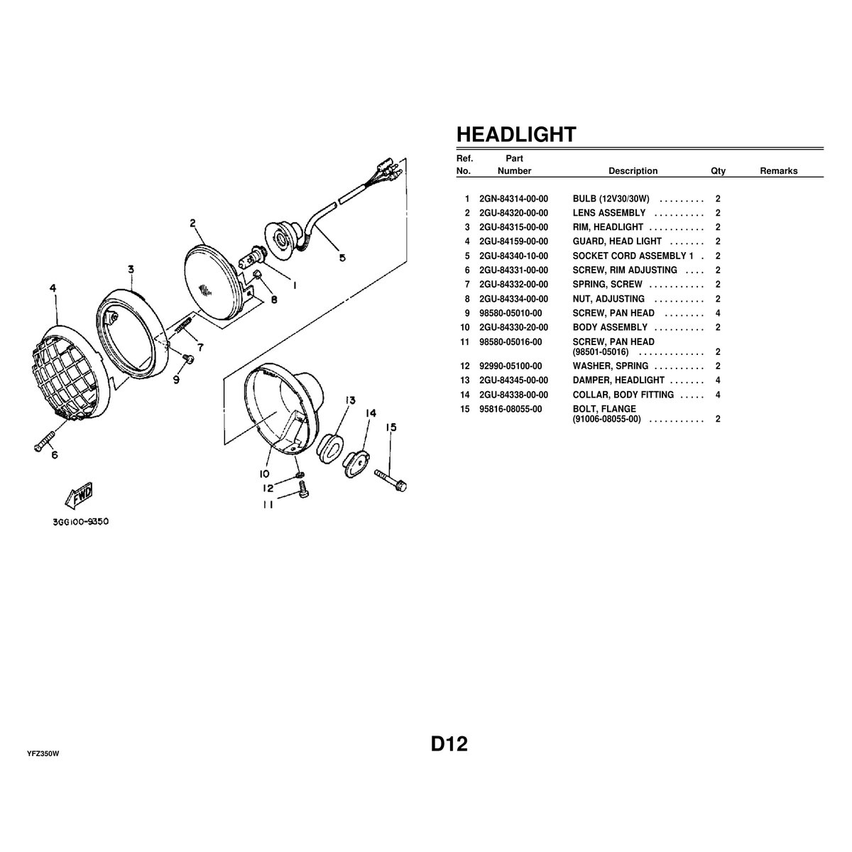 Official Yamaha YFZ350W parts manual with 150+ pages of detailed parts diagrams and part numbers. Essential reference for ATV repairs and maintenance. Instant PDF download.