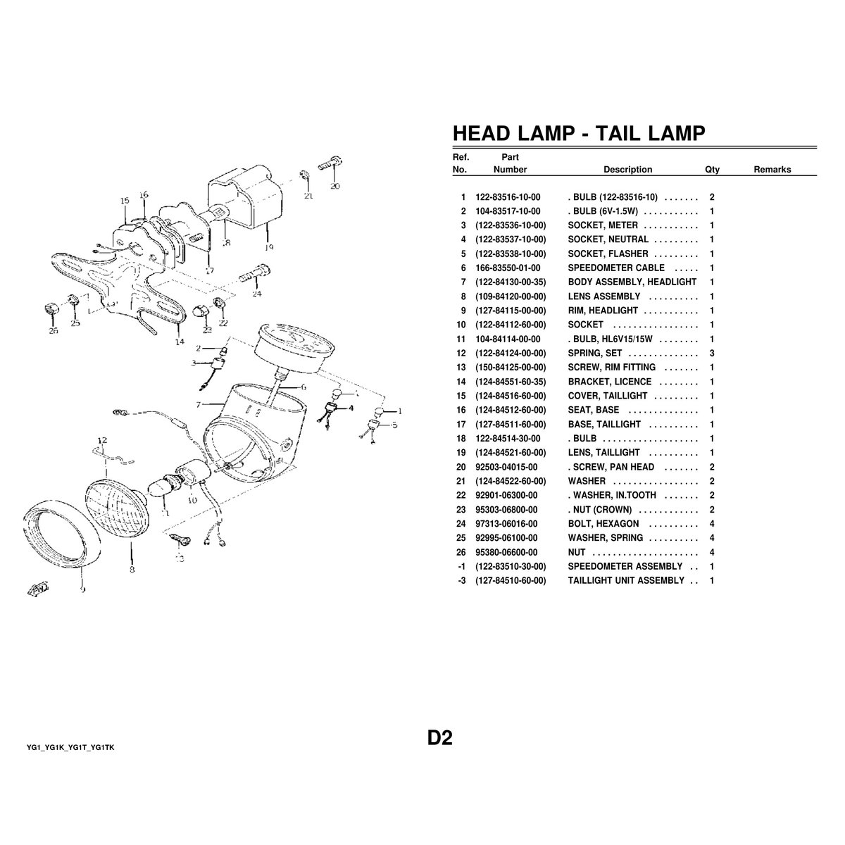 • Yamaha YG1/YG1K/YG1T/YG1TK Parts Manual