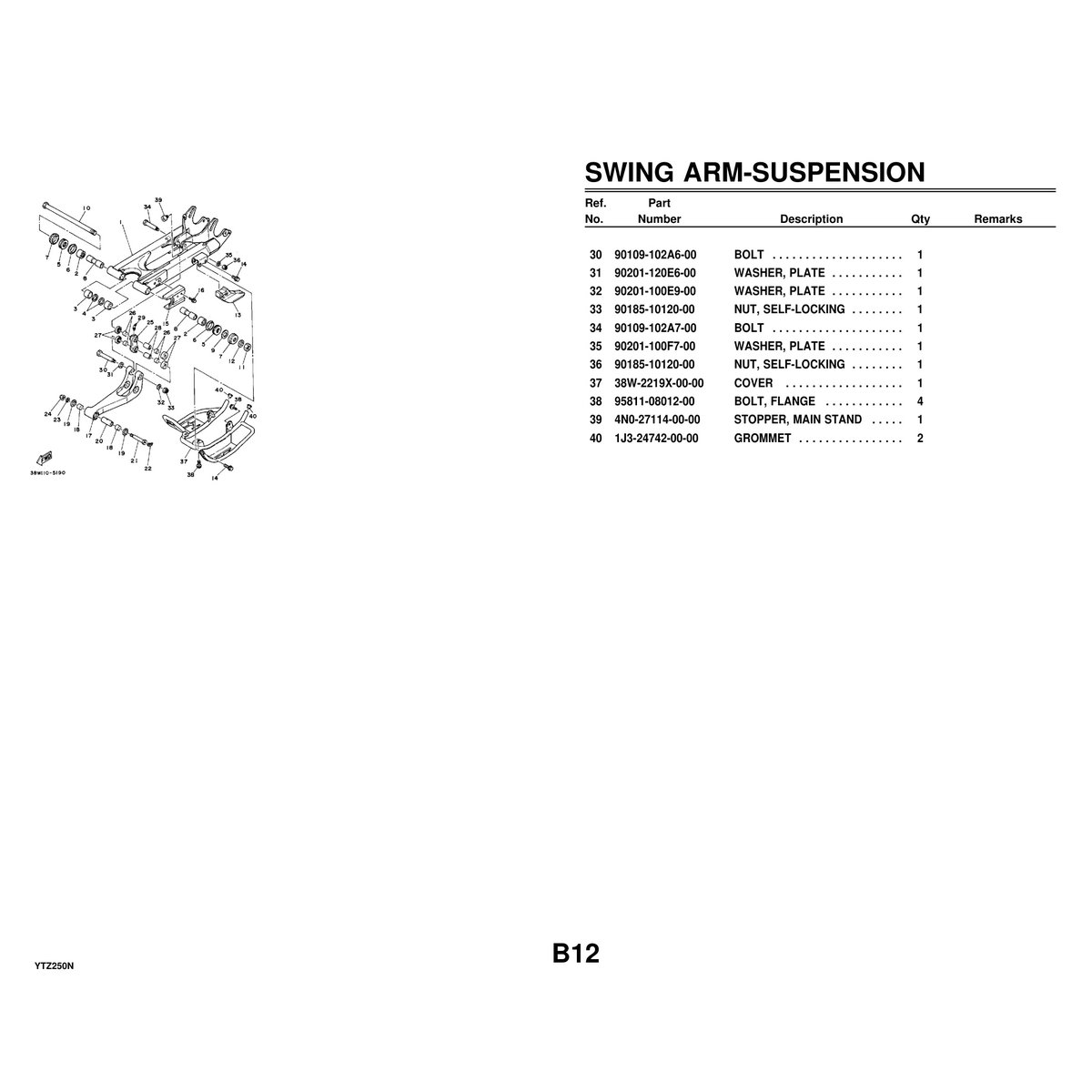 - 1 complete Yamaha YTZ250N Parts Catalog PDF file