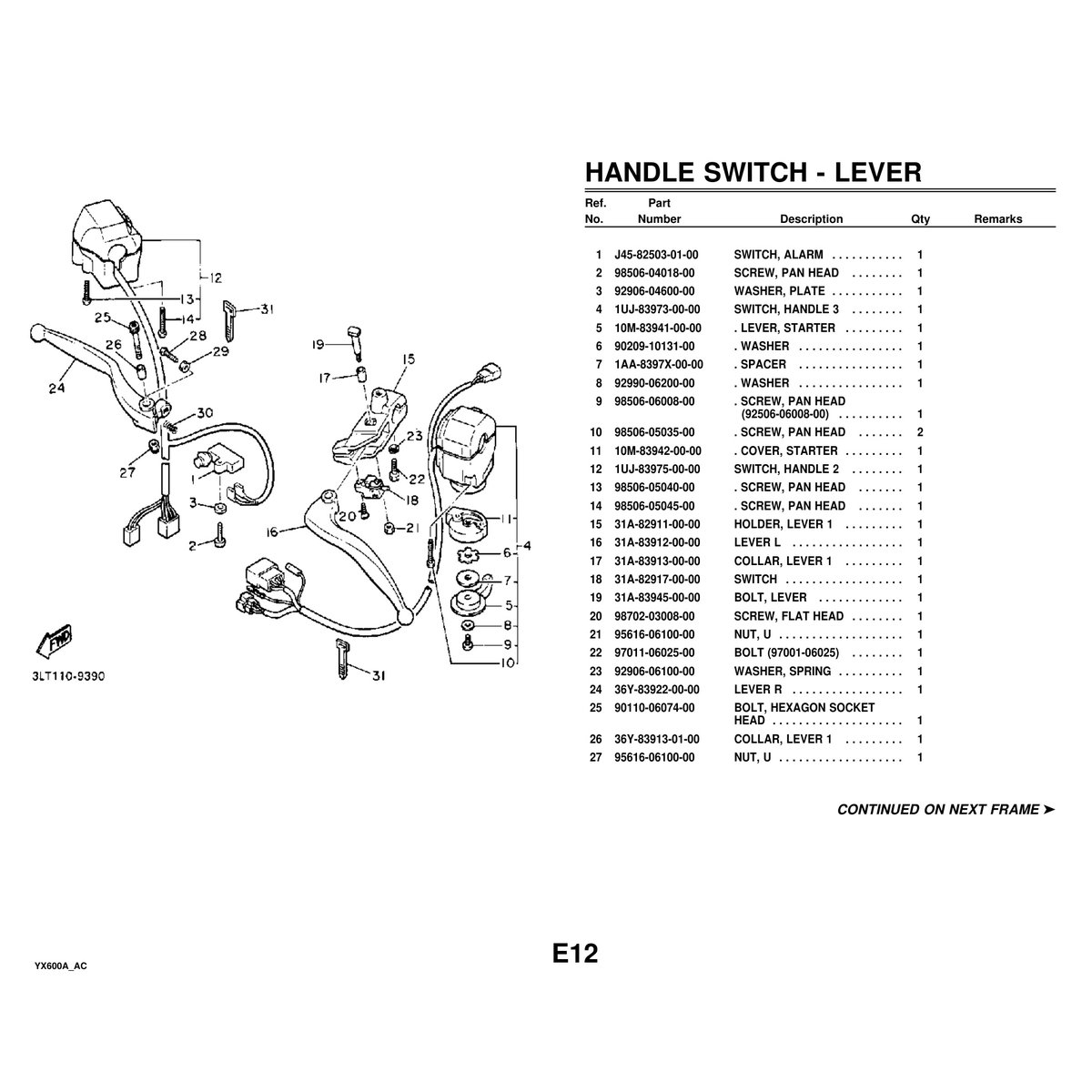 - Yamaha YX600A Cylinder Head Parts Manual