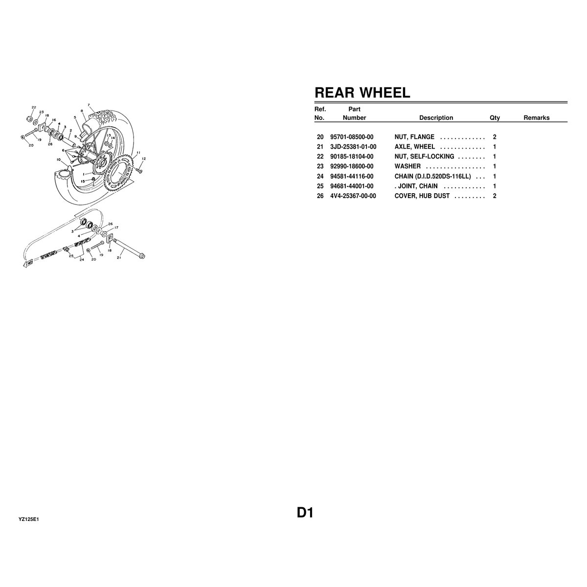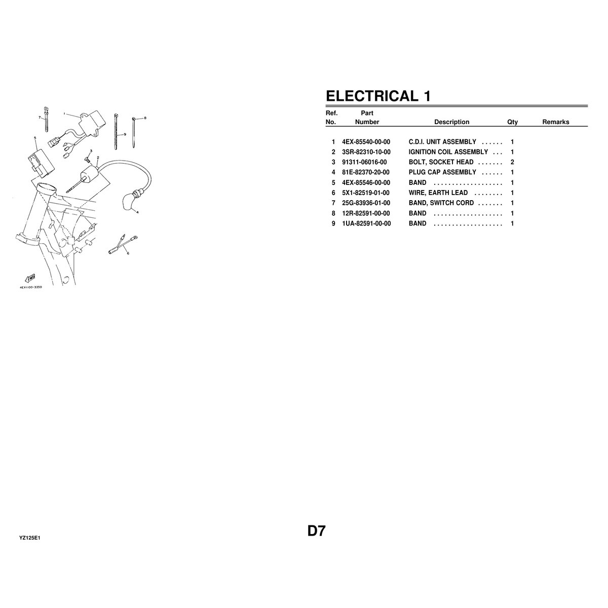 - Yamaha YZ125E1 Cylinder Head Parts Manual