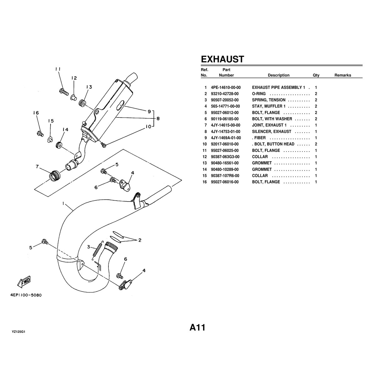 • Official Yamaha factory parts manual for YZ125G1 cylinder head