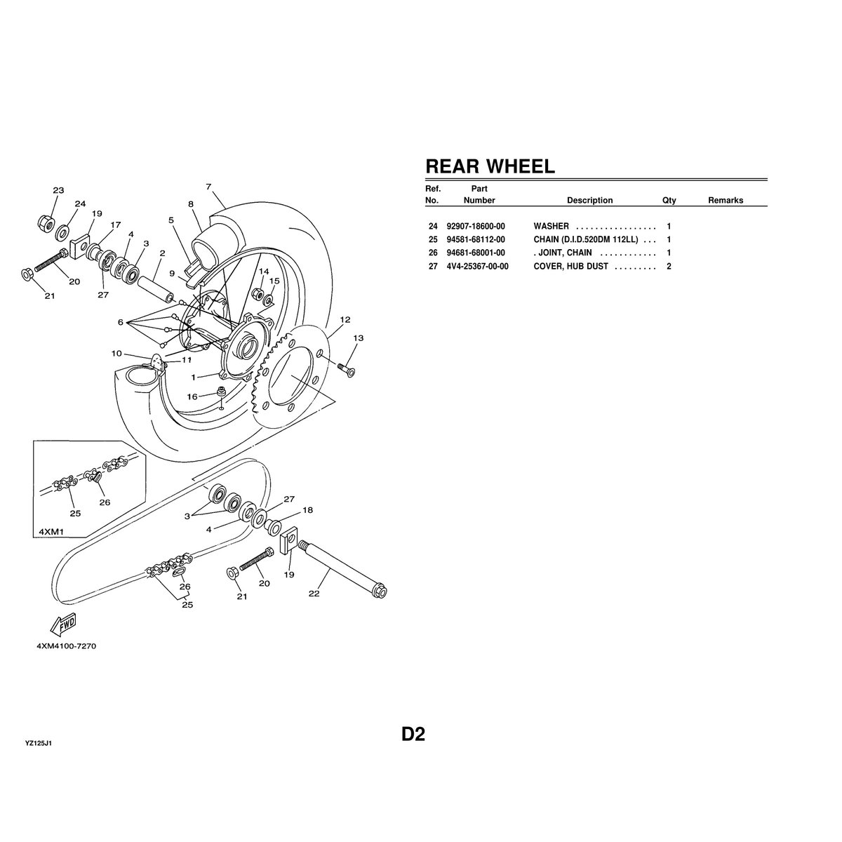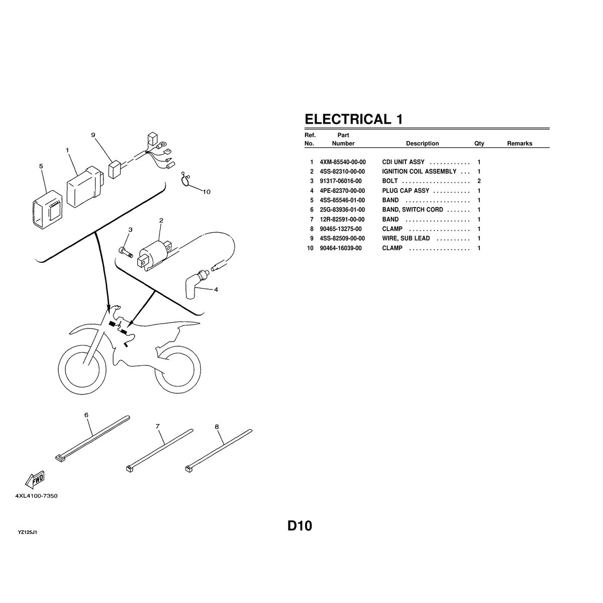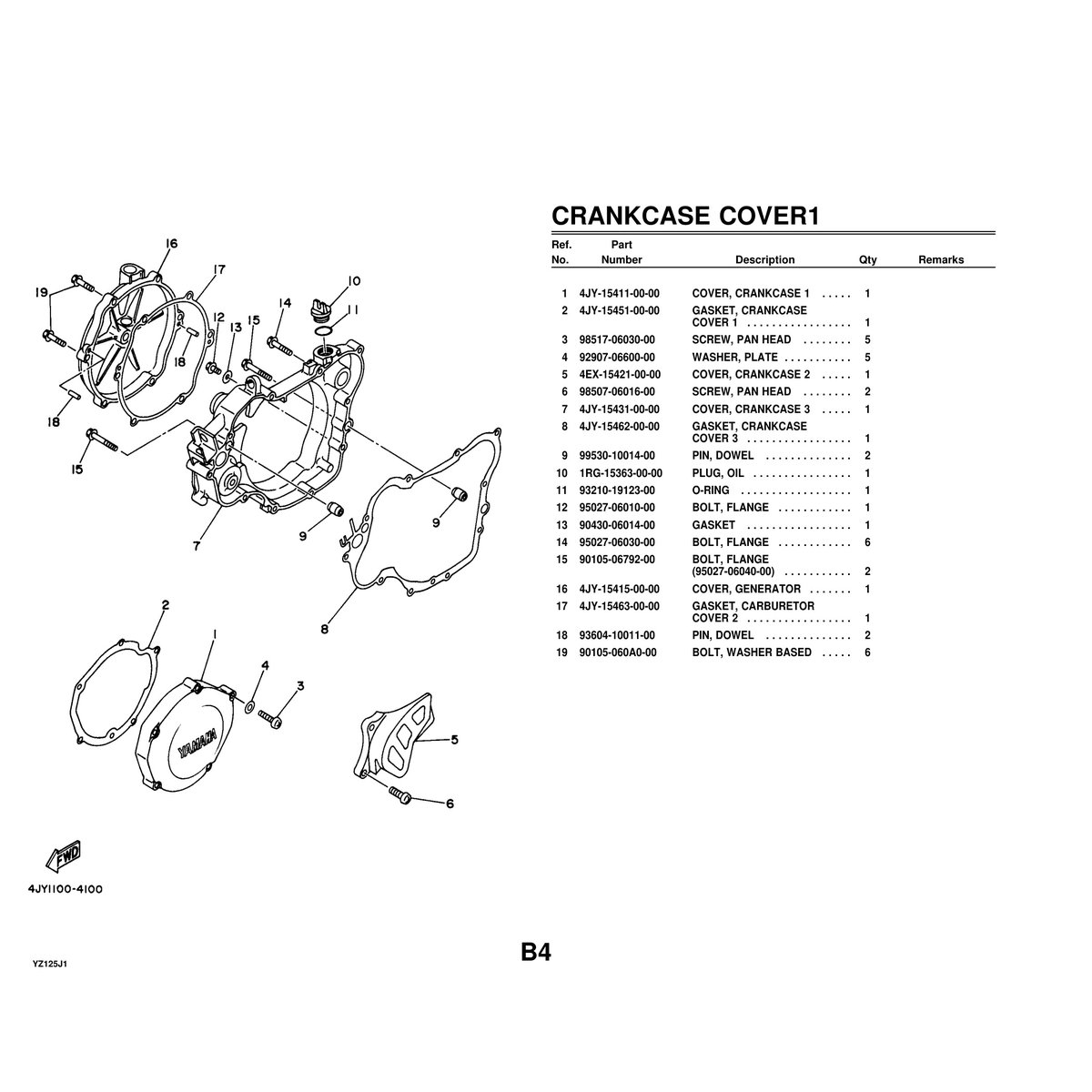 - 1 PDF file – Official Yamaha YZ125J1 Parts Manual