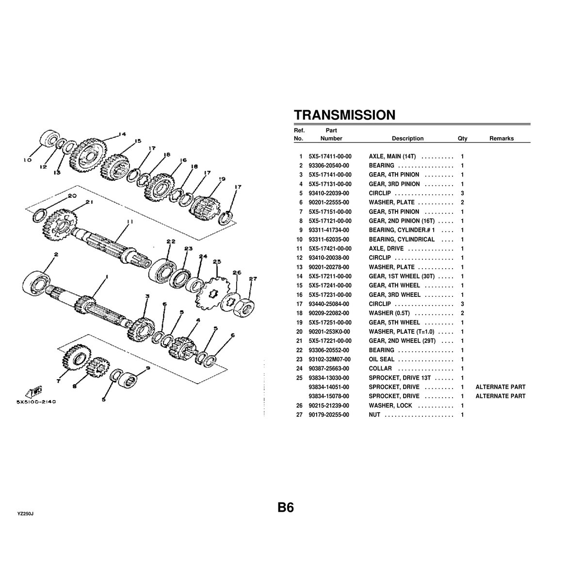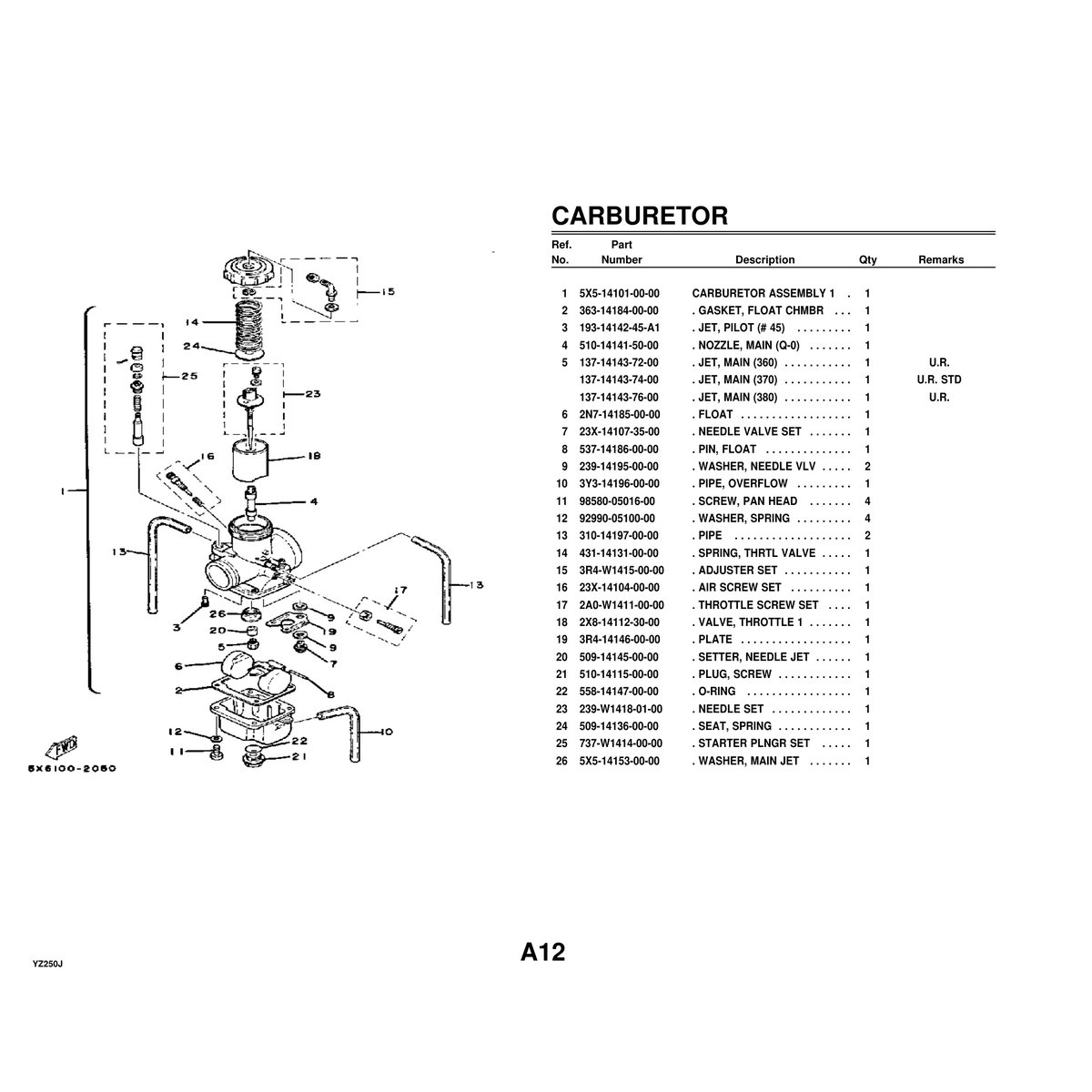 • 1 PDF file – Yamaha YZ250J Parts Diagram Manual
