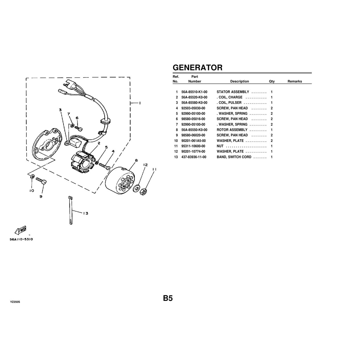 Official Yamaha YZ250S Parts Manual with 180+ pages of exploded diagrams and part numbers. Essential for YZ250S owners, mechanics, and restorers. Instant PDF download.