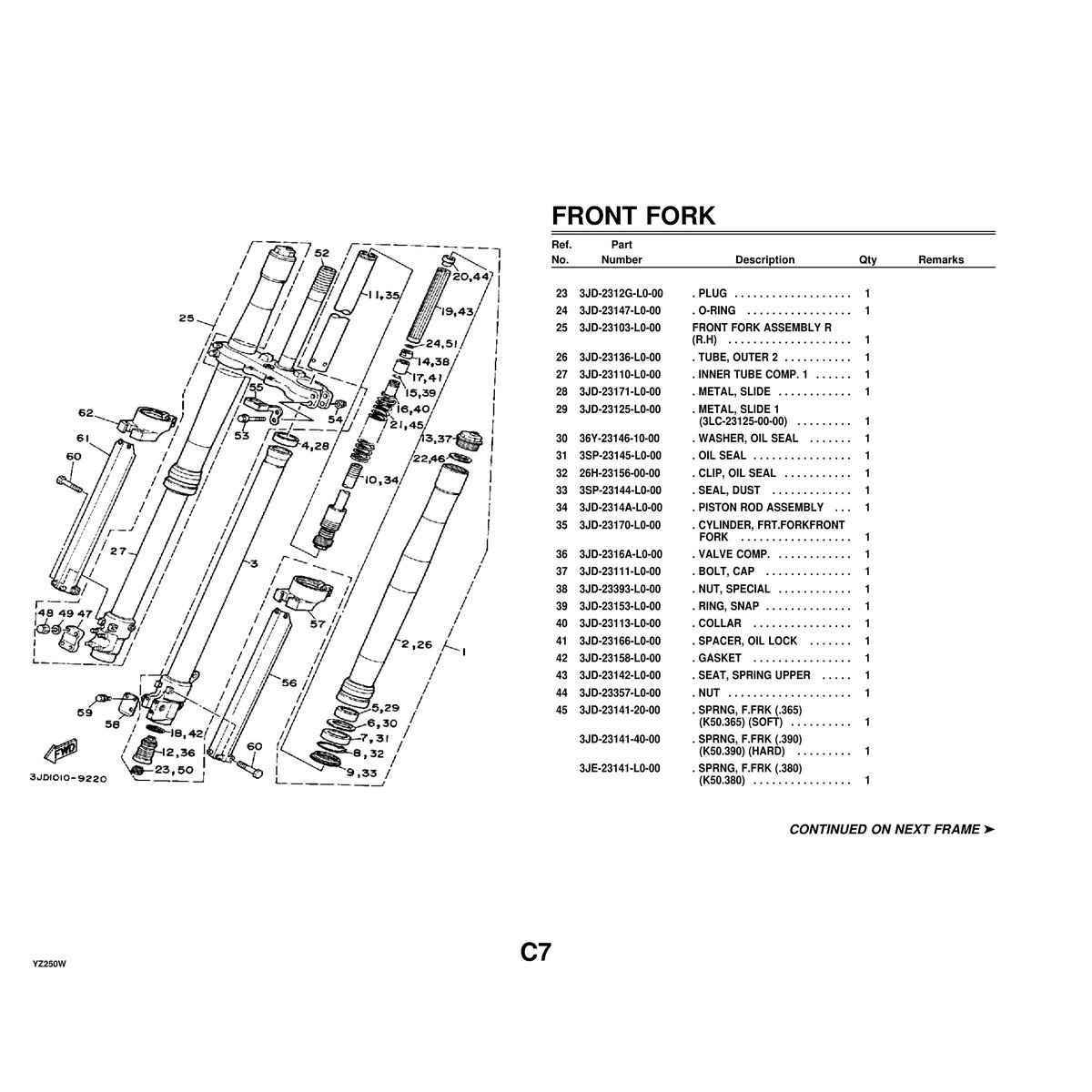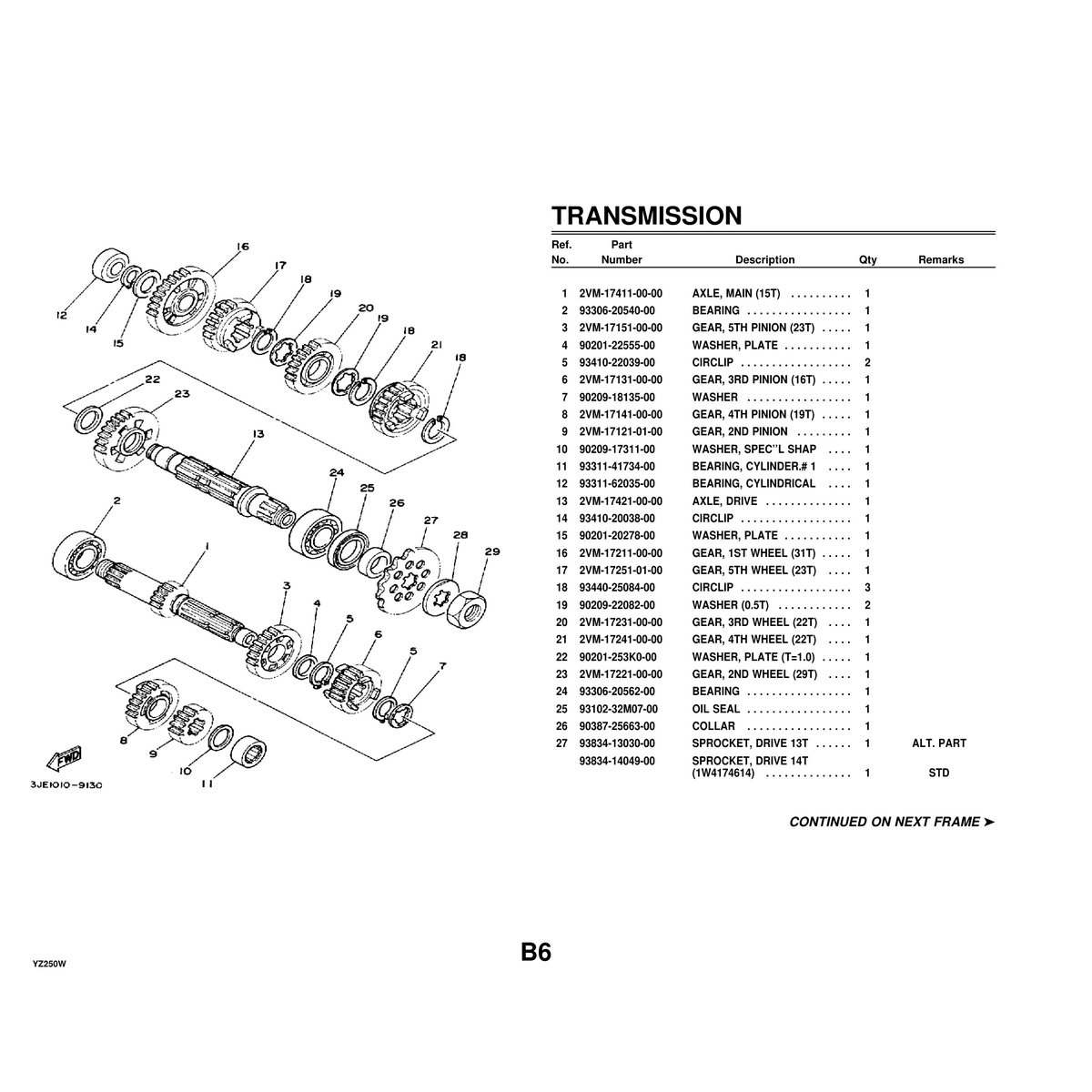 • Yamaha YZ250W Parts Manual