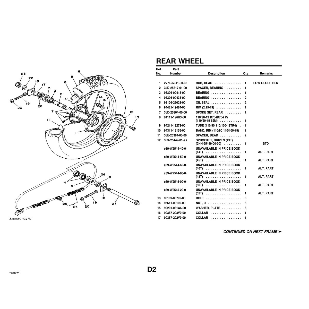 This comprehensive 150+ page illustrated parts manual provides complete parts identification and ordering information for the Yamaha YZ250W motorcycle. Every component, assembly, and part number is clearly documented with detailed exploded diagrams.