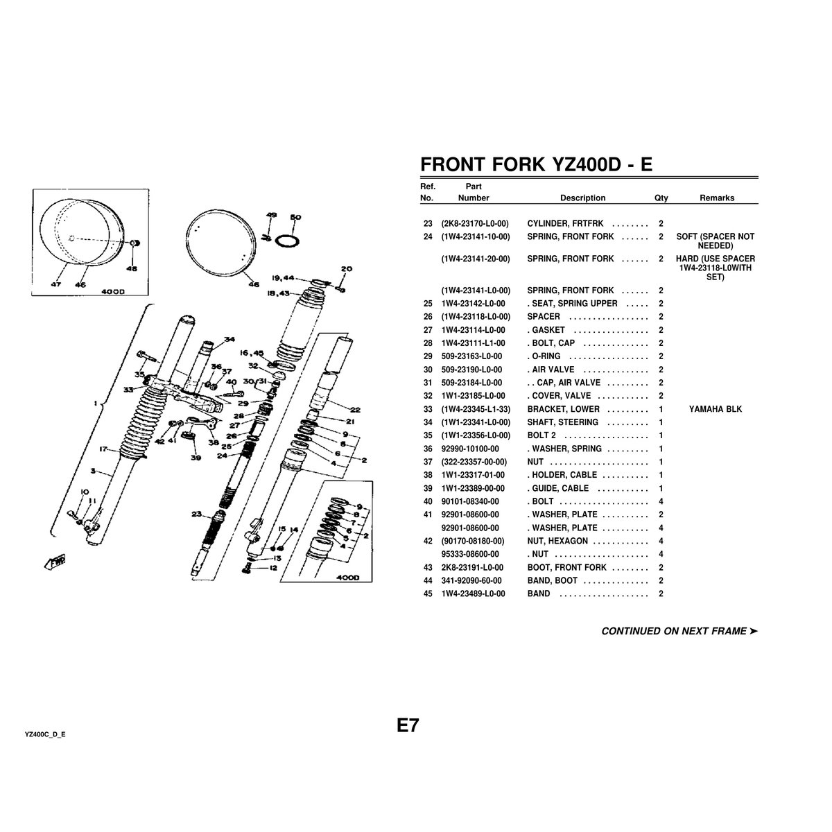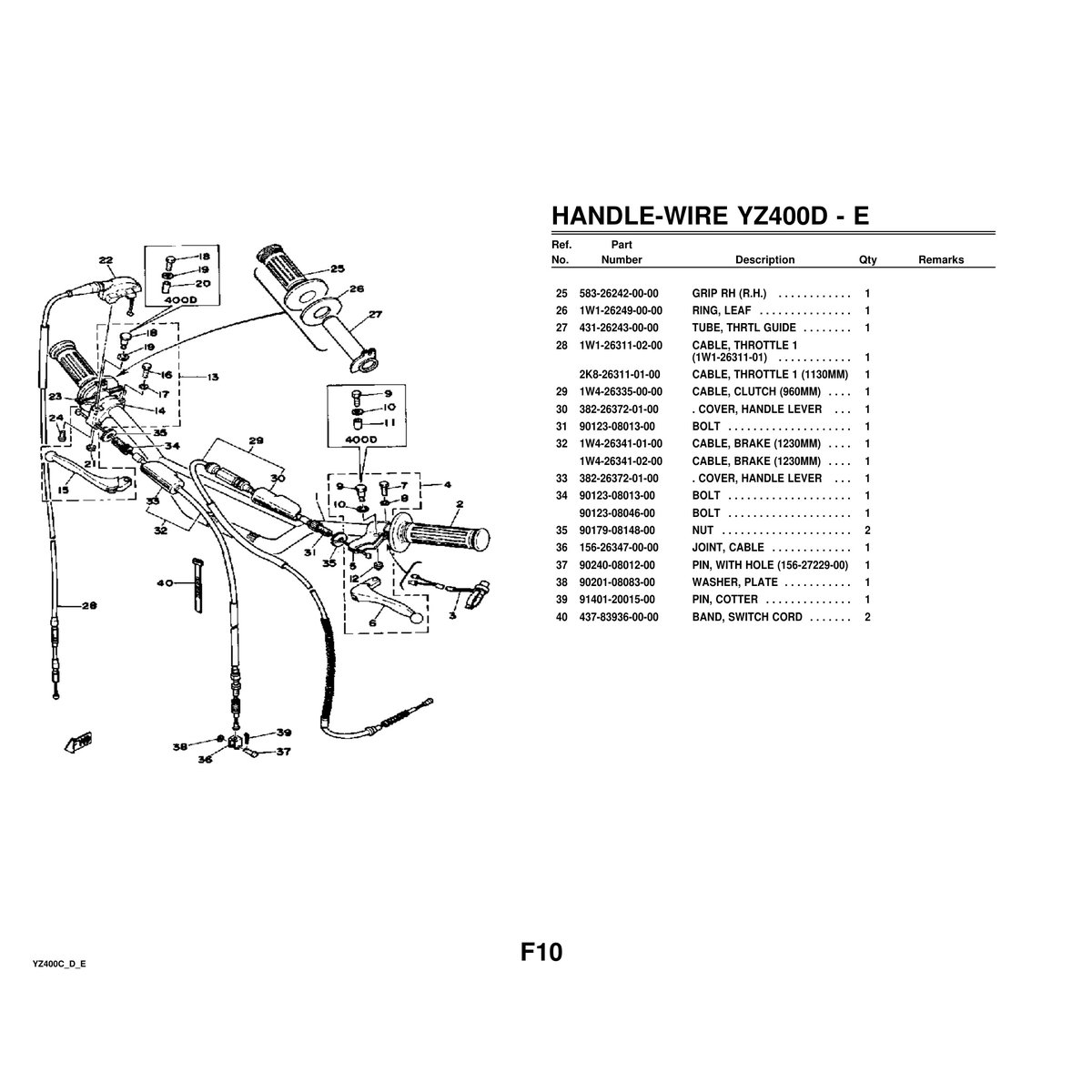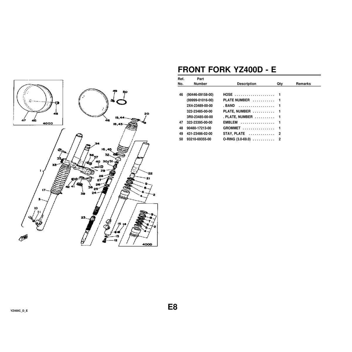 - Yamaha YZ400C/D/E Parts Manual
