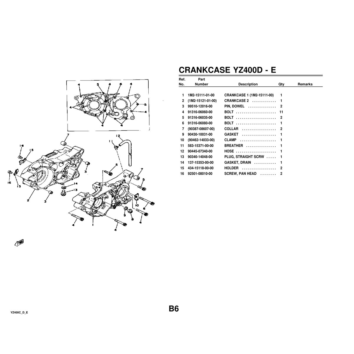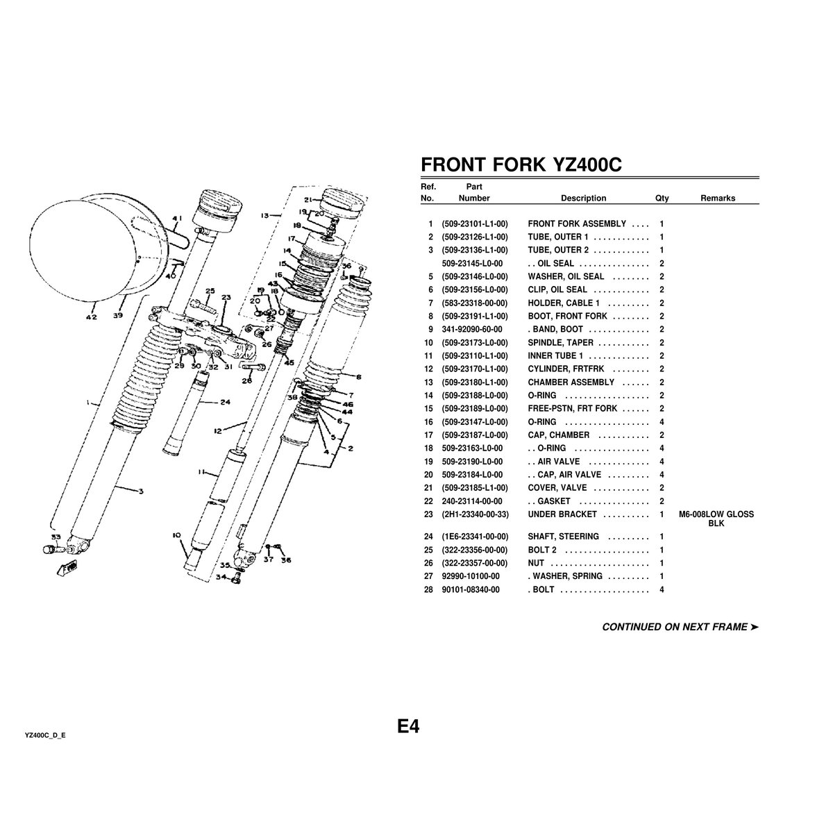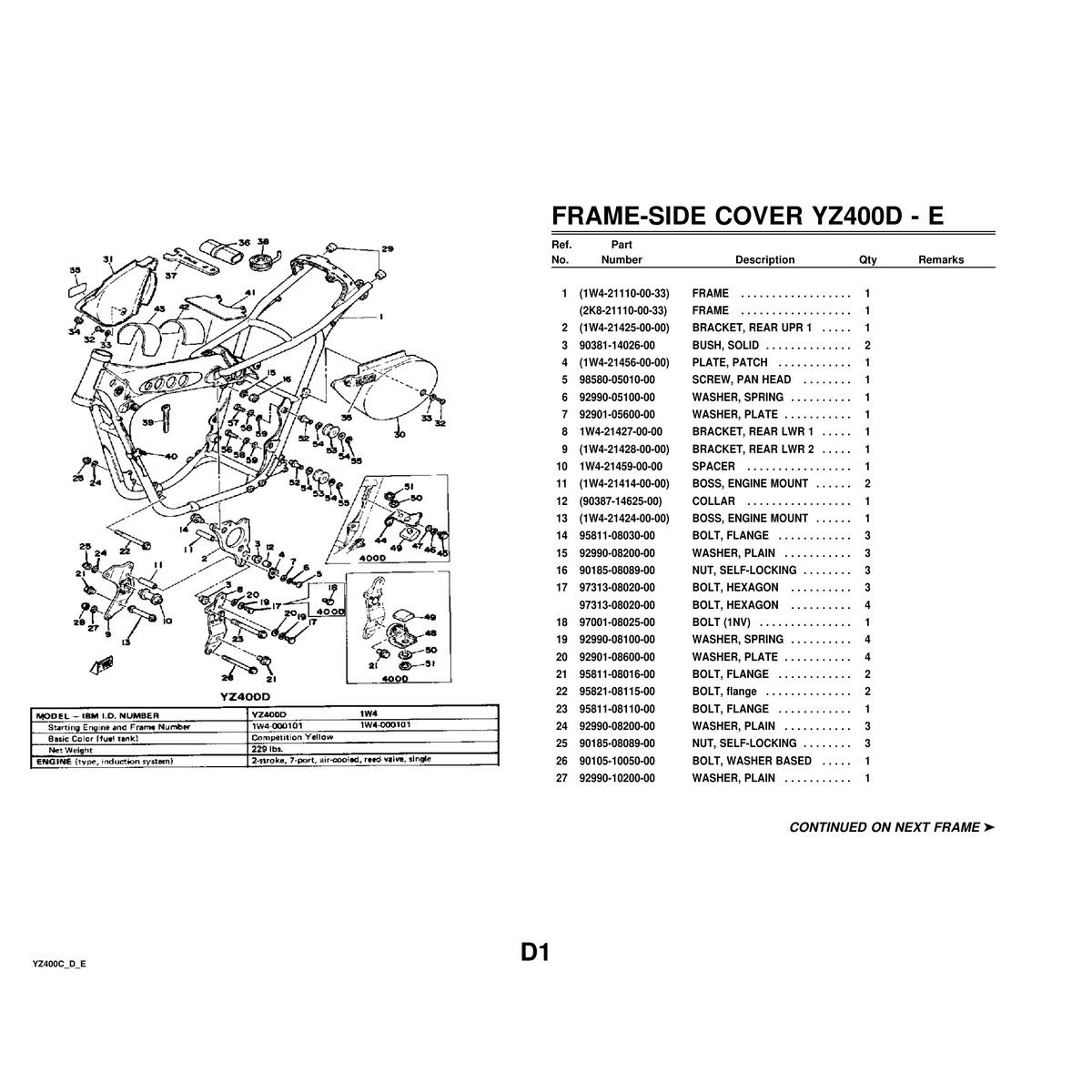 - Yamaha YZ400C/D/E Parts Manual