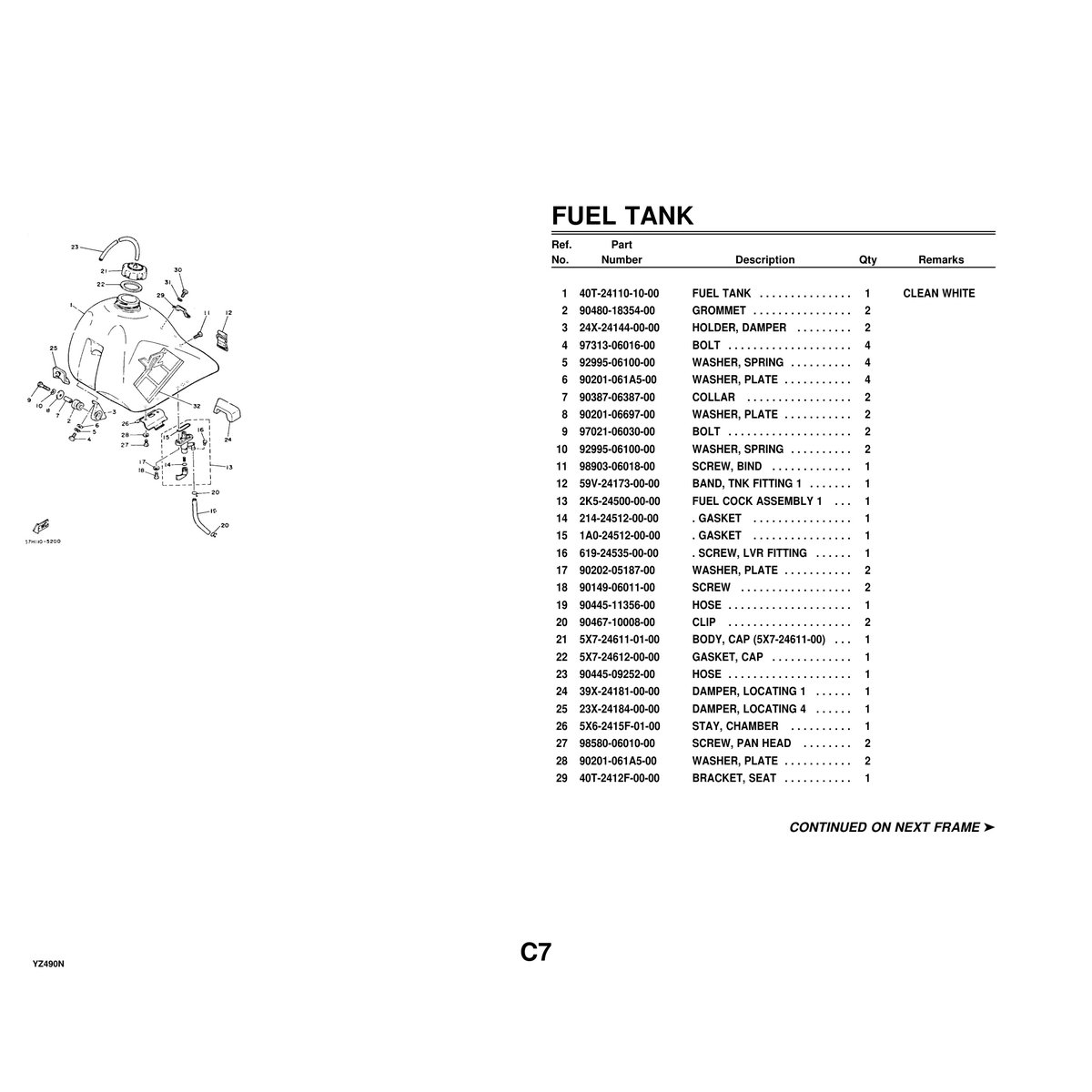 This comprehensive parts catalog provides detailed parts identification and ordering information for the Yamaha YZ490N motocross motorcycle. This essential reference document contains exploded diagrams, part numbers, and specifications for every component on your YZ490N.