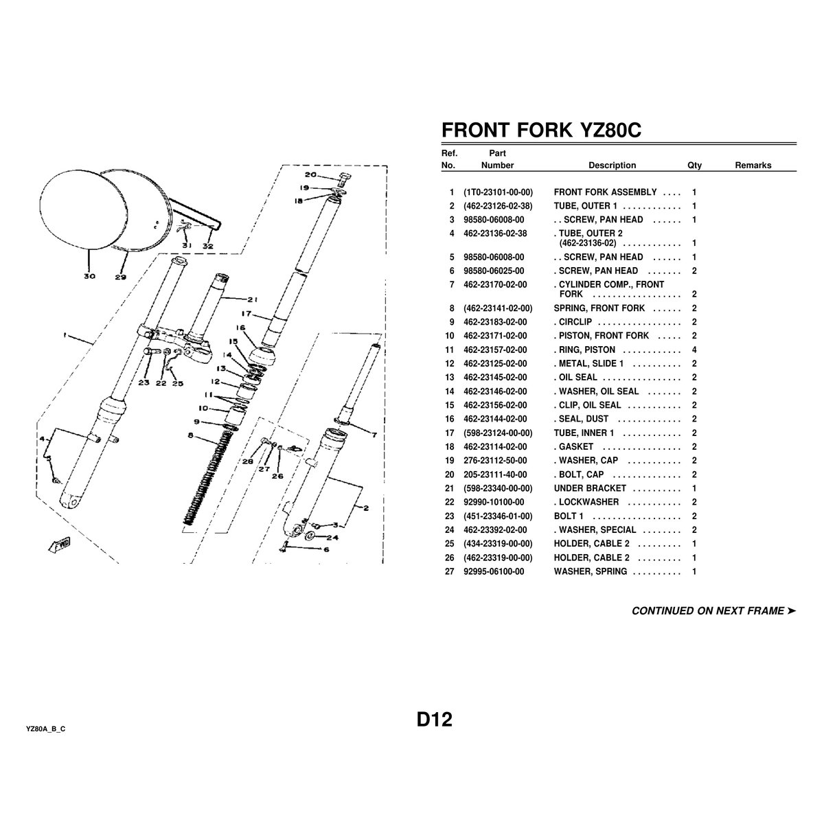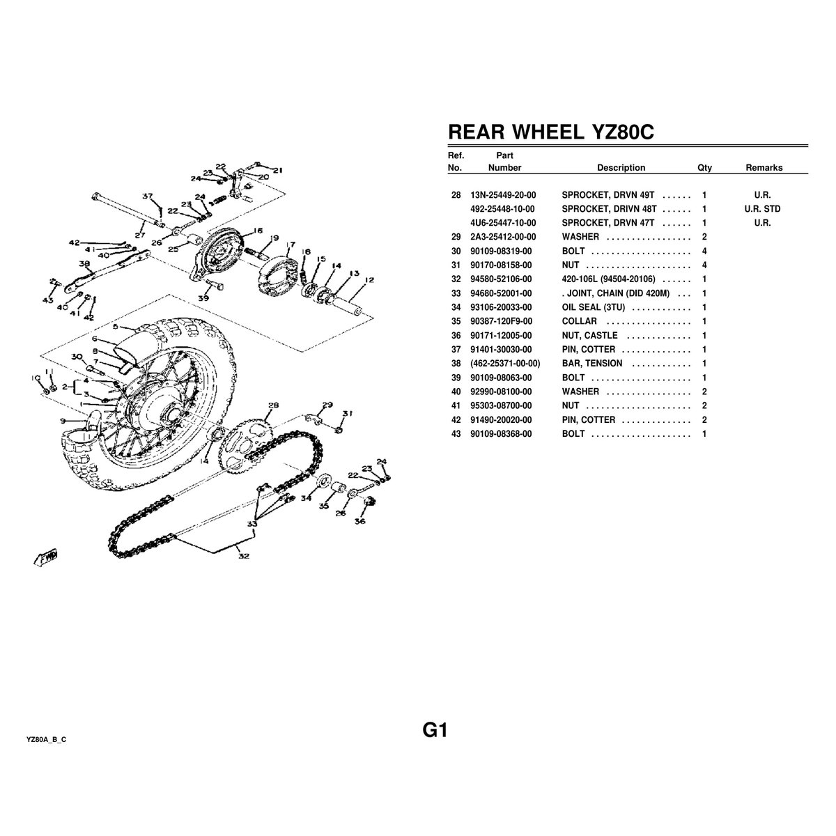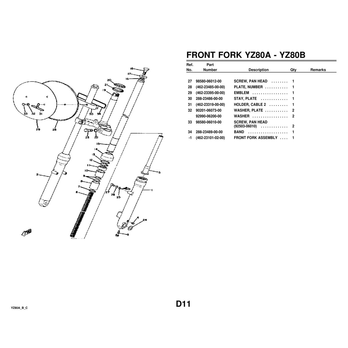 - Yamaha YZ80A/YZ80B/YZ80C Parts Manual